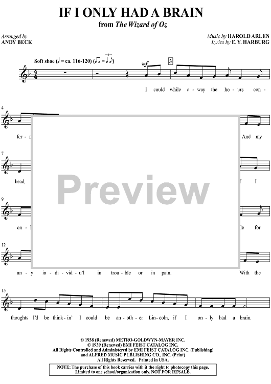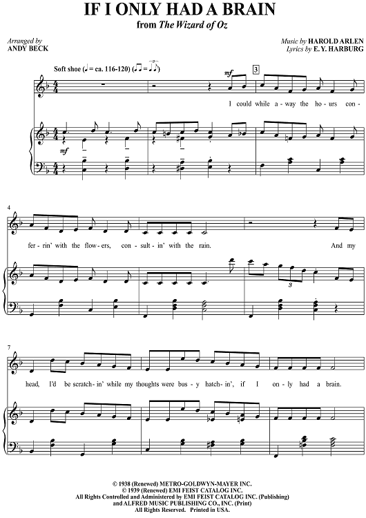 "If I Only Had a Brain (from "The Wizard of Oz")" Sheet Music by Harold Arlen
