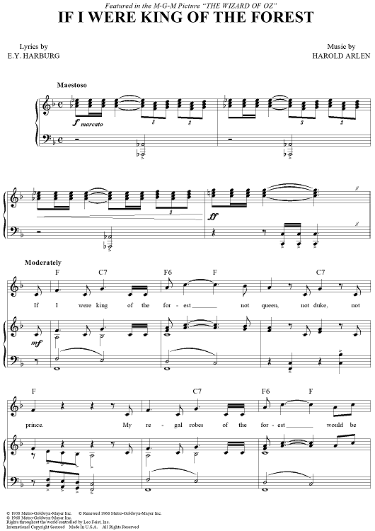 "If I Were King of the Forest" Sheet Music by Harold Arlen