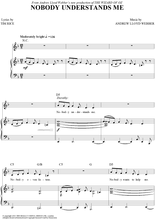 "Nobody Understands Me" Sheet Music by Andrew Lloyd Webber