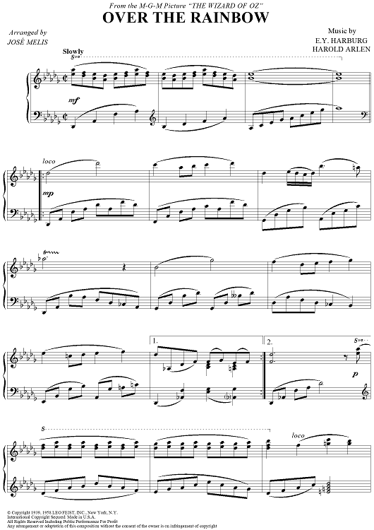"(Somewhere) Over the Rainbow" Sheet Music by Harold Arlen