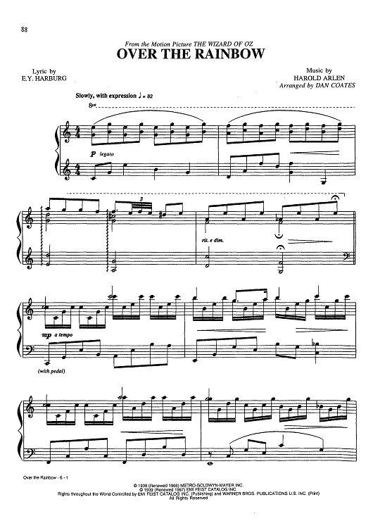 "(Somewhere) Over the Rainbow" Sheet Music by Harold Arlen