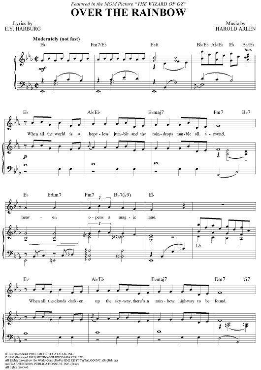 "(Somewhere) Over the Rainbow" Sheet Music by Judy Garland