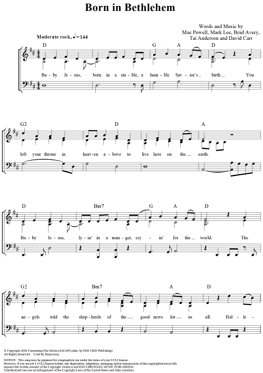 Digital Sheet Music for Born in Bethlehem by Third Day, Mac Powell, Mark David Lee, Tai Anderson, Brad Avery, David Carr scored for Piano/Vocal/Chords; id:358904