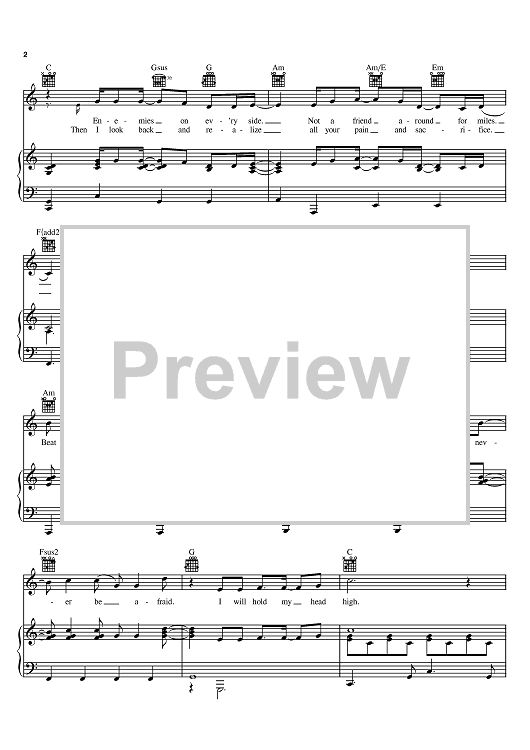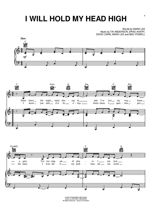 Digital Sheet Music for I Will Hold My Head High by Third Day, Mac Powell, Mark David Lee, Tai Anderson, Brad Avery, David Carr scored for Piano/Vocal/Chords; id:375230
