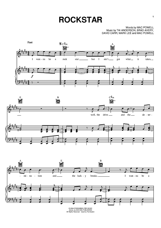 Digital Sheet Music for RockStar by Third Day, Mac Powell, Mark David Lee, Tai Anderson, Brad Avery, David Carr scored for Piano/Vocal/Chords; id:375220