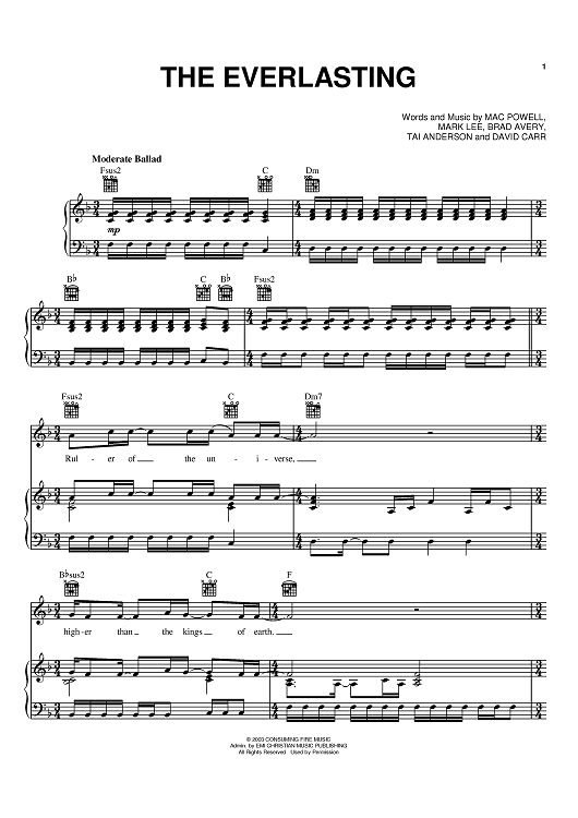 Digital Sheet Music for The Everlasting by Third Day, Mac Powell, Mark David Lee, Brad Avery scored for Piano/Vocal/Chords; id:372209