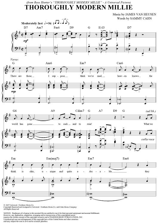 Digital Sheet Music for Thoroughly Modern Millie by Sammy Cahn, Jimmy Van Heusen, Julie Andrews scored for Piano/Vocal/Chords; id:293395