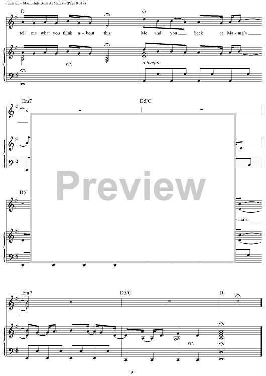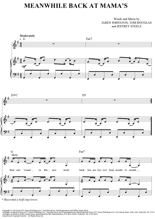 Digital Sheet Music for Meanwhile Back At Mama's by Tim McGraw, Tom Douglas, Jeffrey Steele, Jaren Johnston scored for Piano/Vocal/Chords; id:443596