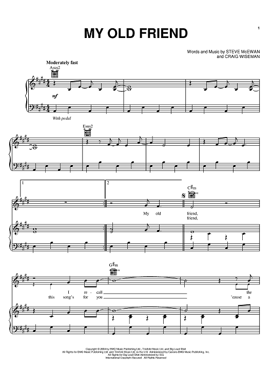 Digital Sheet Music for My Old Friend by Tim McGraw, Craig Wiseman, Steve McEwan scored for Piano/Vocal/Chords; id:387651