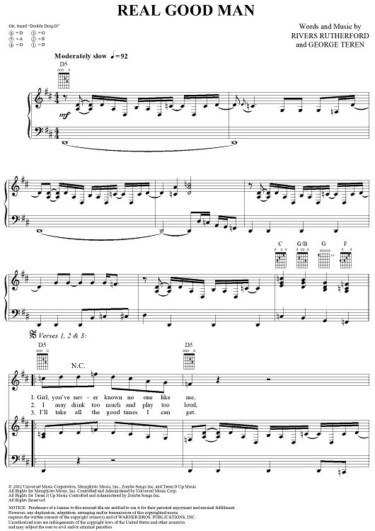 Digital Sheet Music for Real Good Man by Tim McGraw, George Teren, Rivers Rutherford scored for Piano/Vocal/Chords; id:296919