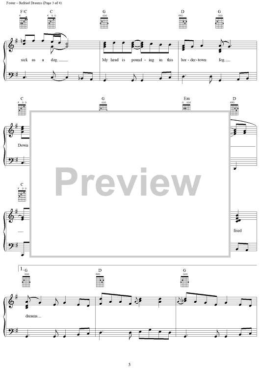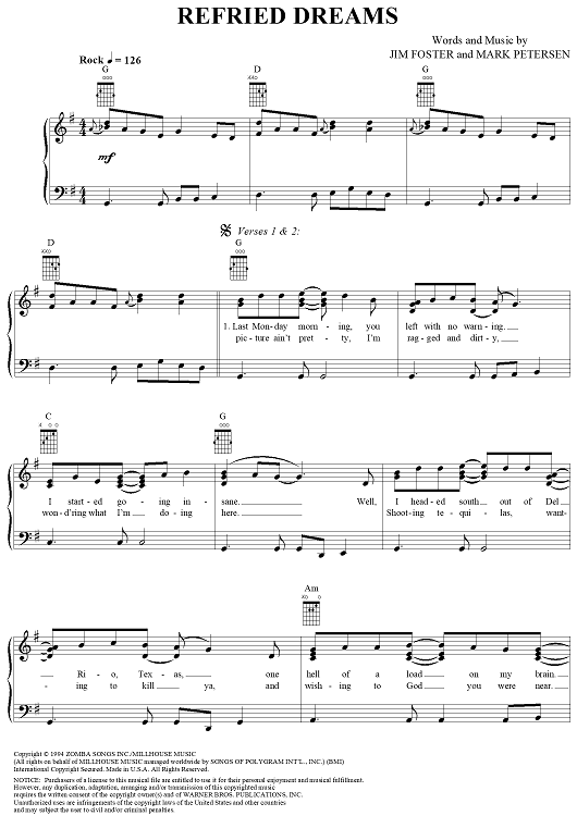 Digital Sheet Music for Refried Dreams by Tim McGraw, Jim Foster, Mark Petersen scored for Piano/Vocal/Chords; id:269490