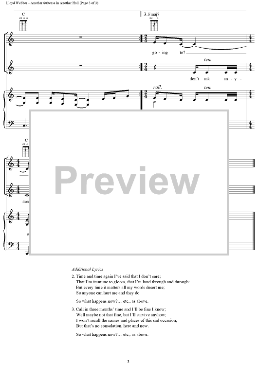 "Another Suitcase in Another Hall" Sheet Music by Andrew Lloyd Webber
