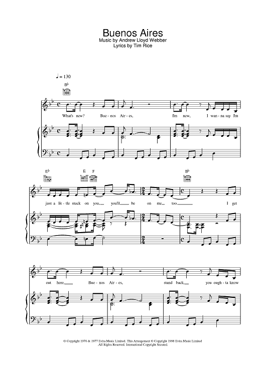 Digital Sheet Music for Buenos Aires by Andrew Lloyd Webber, Tim Rice, Madonna scored for Piano/Vocal/Chords; id:375908