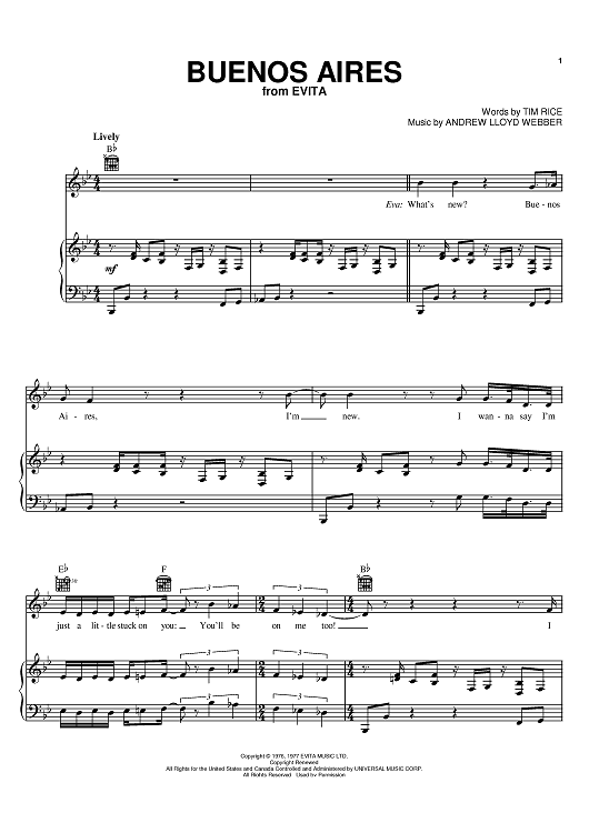Digital Sheet Music for Buenos Aires by Andrew Lloyd Webber, Tim Rice, Madonna scored for Piano/Vocal/Chords; id:397304