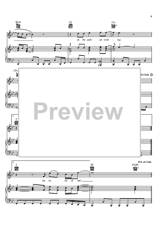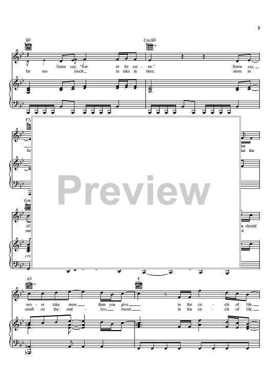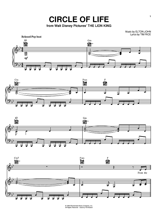 Digital Sheet Music for Circle Of Life by Elton John, Tim Rice scored for Piano/Vocal/Chords; id:392549