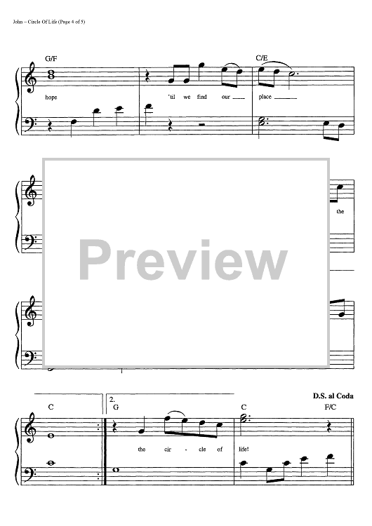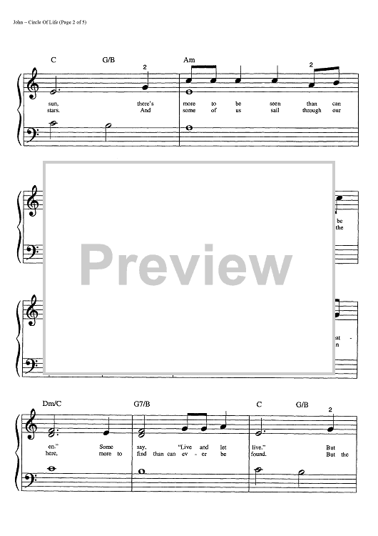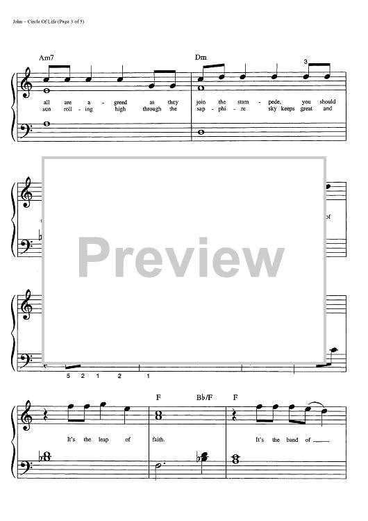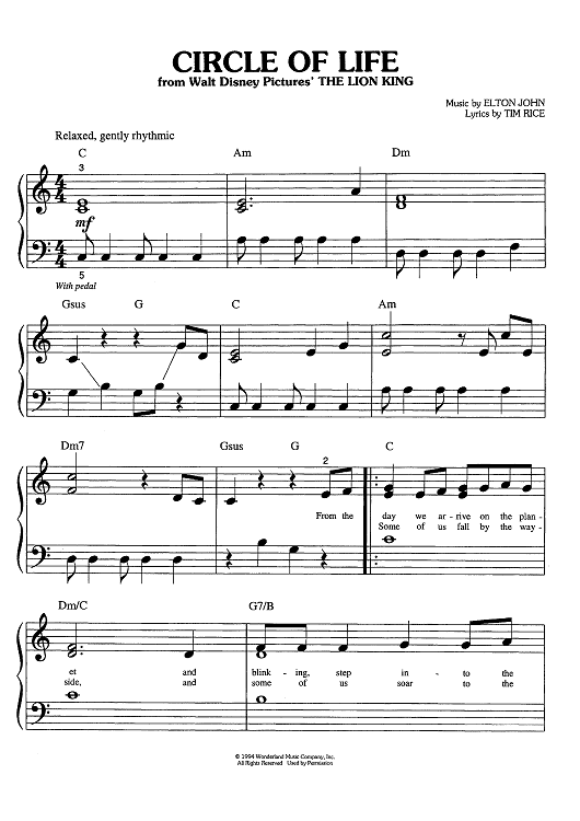 Digital Sheet Music for Circle Of Life by Elton John, Tim Rice scored for Big Note Piano; id:445007