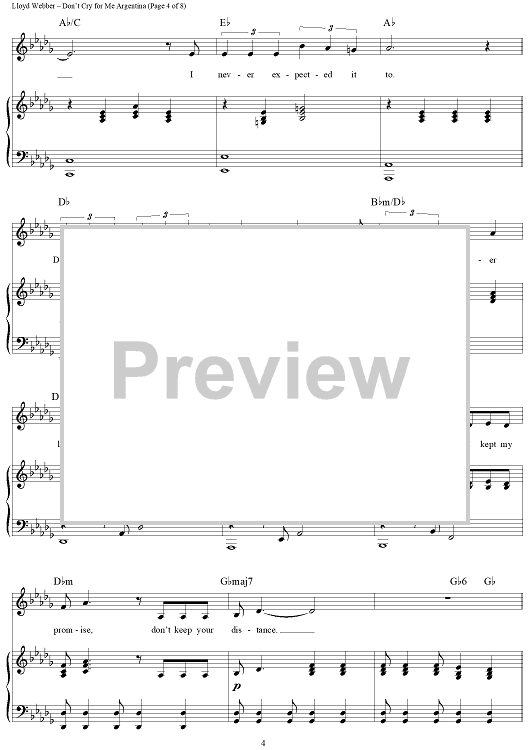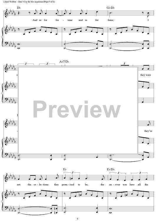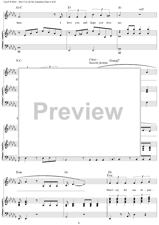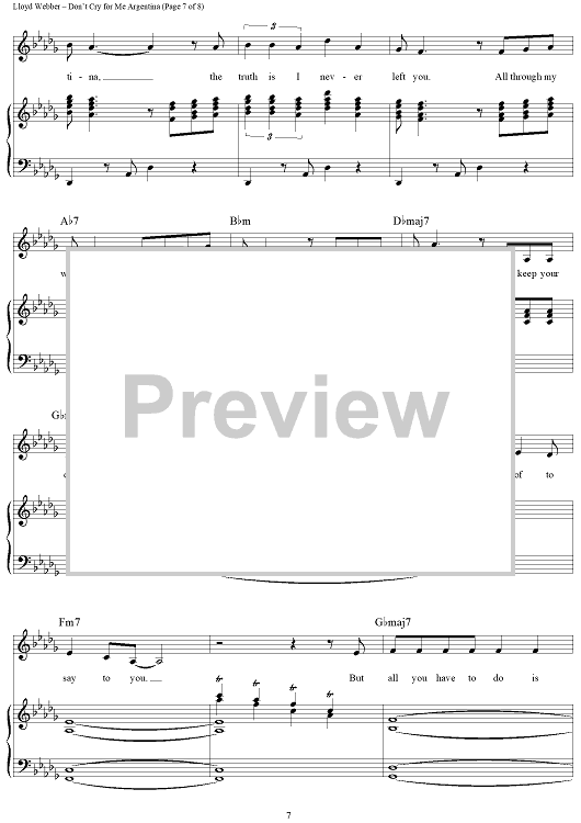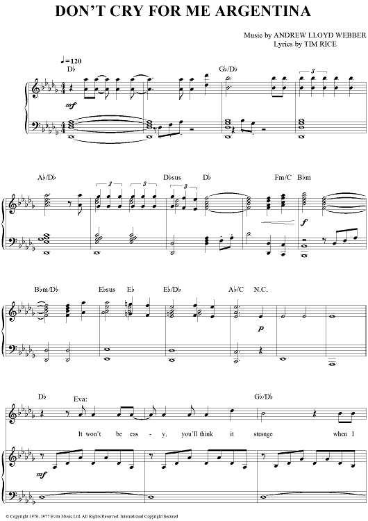 Digital Sheet Music for Don't Cry For Me Argentina by Andrew Lloyd Webber, Tim Rice, Donna Summer, Madonna, Sarah Brightman scored for Piano/Vocal/Chords; id:379121