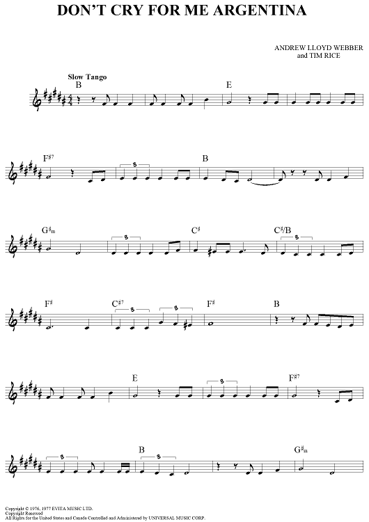 "Don't Cry for Me Argentina" Sheet Music by Andrew Lloyd Webber