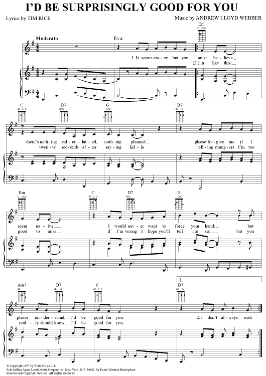Digital Sheet Music for I'd Be Surprisingly Good For You by Andrew Lloyd Webber, Tim Rice scored for Piano/Vocal/Chords; id:366053