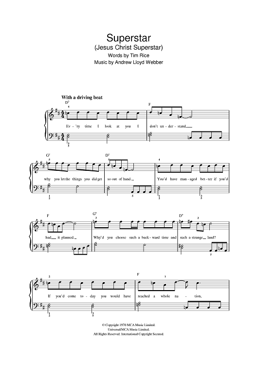 Digital Sheet Music for Superstar by Andrew Lloyd Webber, Tim Rice scored for Easy Piano; id:384489