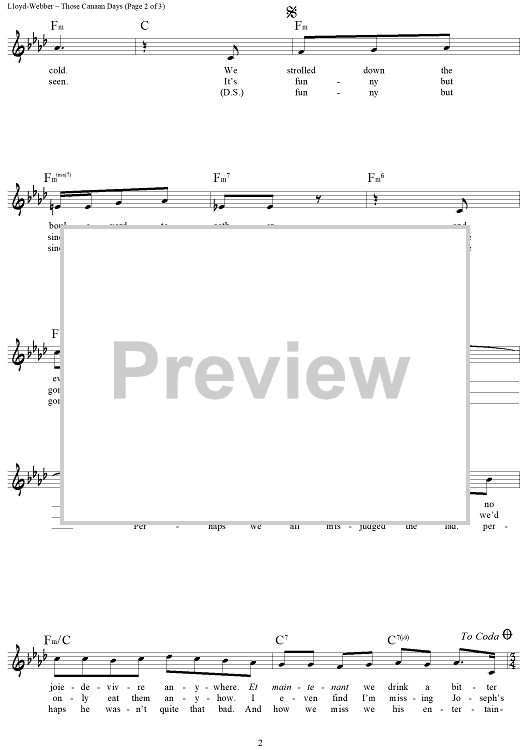 "Those Canaan Days" Sheet Music by Andrew Lloyd Webber