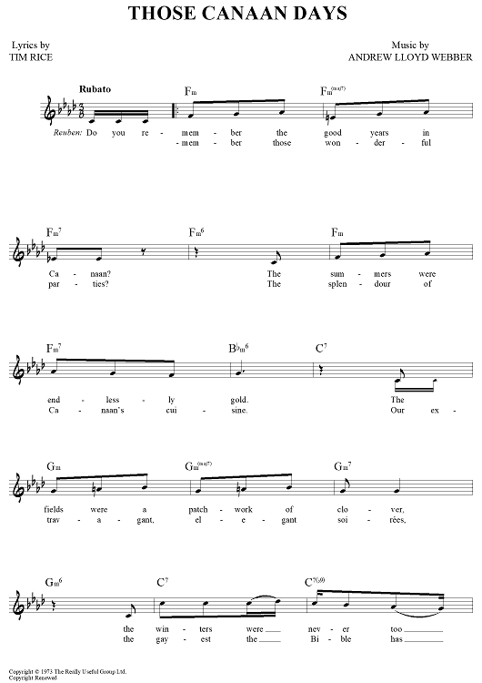 Digital Sheet Music for Those Canaan Days by Andrew Lloyd Webber, Tim Rice scored for Lead Sheet; id:452923