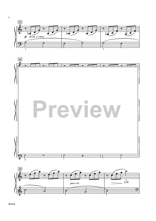 This enchanting, lyrical solo is beautifully and simply choreographed for the early intermediate pianist. The expressive left-hand melody gently sets off the rolling eighths in the right hand with every beat, giving the brook its babbling effect. The impressionistic sound will inspire musicianship. Sure to be a student favorite!