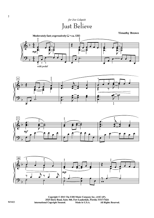 "Just Believe" Sheet Music by Timothy Brown