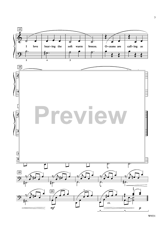 Written in the key of C major with no accidentals, this lyrical solo contains an optional teacher duet part. This piece asks you to listen to the sounds around you, and notice that music is everywhere in nature.