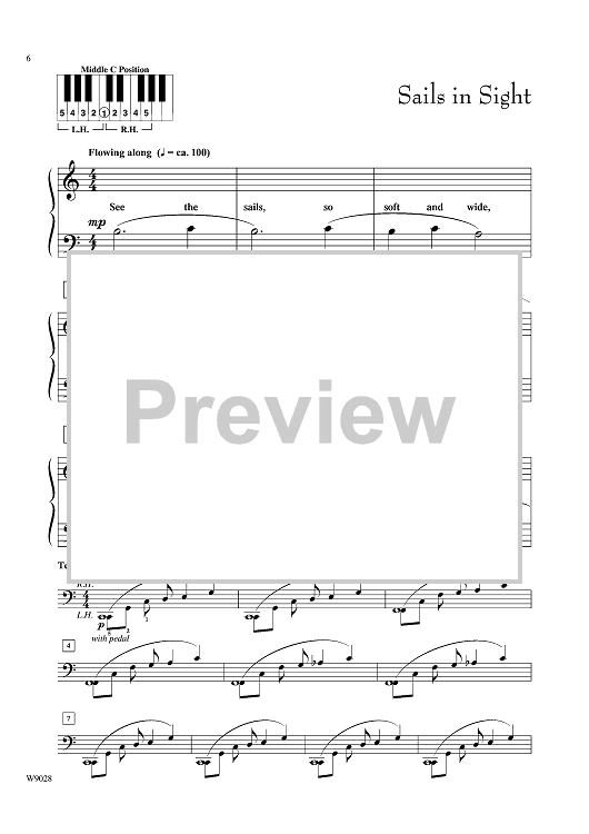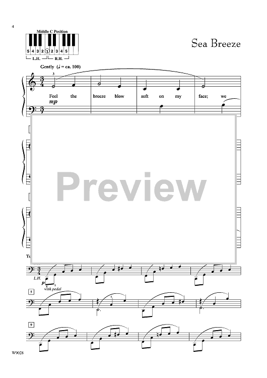 This charming suite of three tropical-themed pieces includes motivating optional teacher duets. The pieces remain in Middle C position, and avoid eighth-note rhythms. Lyric by Roybeth Savage