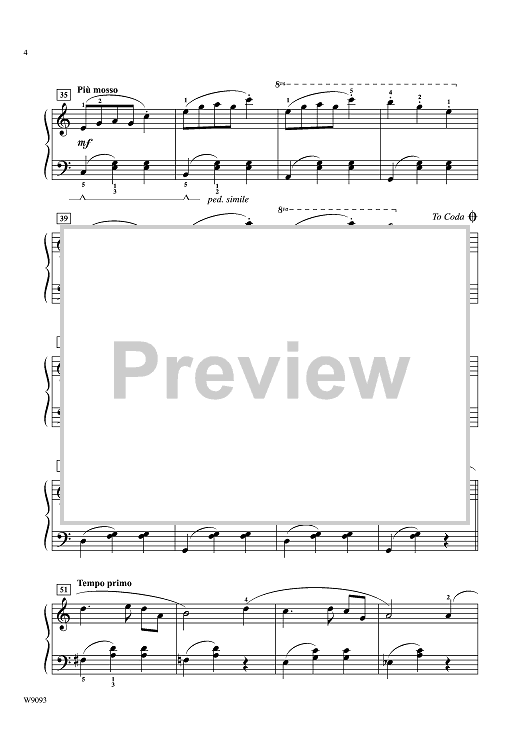 This graceful, lighthearted waltz features lyrical phrasing. Starting in the key of A and modulating to C major, the piece explores a wide dynamic range.