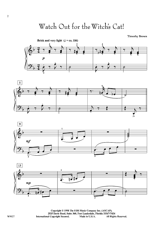 "Watch Out for the Witch's Cat!" Sheet Music by Timothy Brown