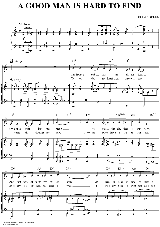 Digital Sheet Music for A Good Man Is Hard To Find by Bessie Smith, Eddie Green scored for Piano/Vocal/Chords; id:109041