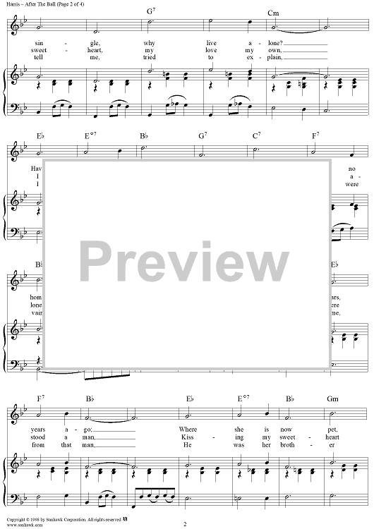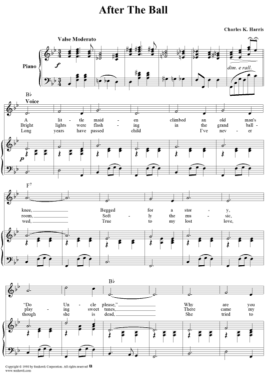 Digital Sheet Music for After the Ball by Charles K. Harris scored for Piano/Vocal; id:109647