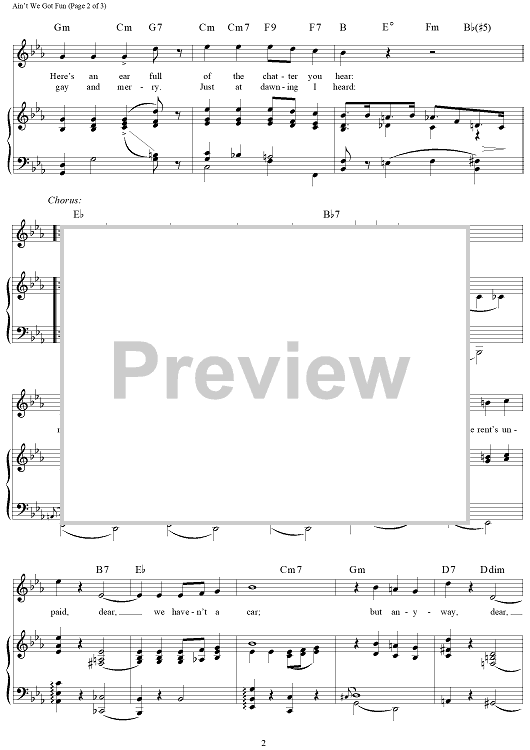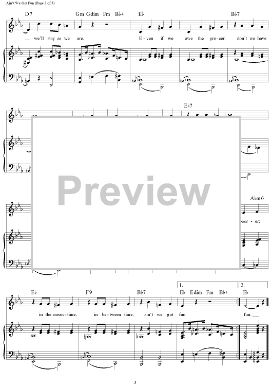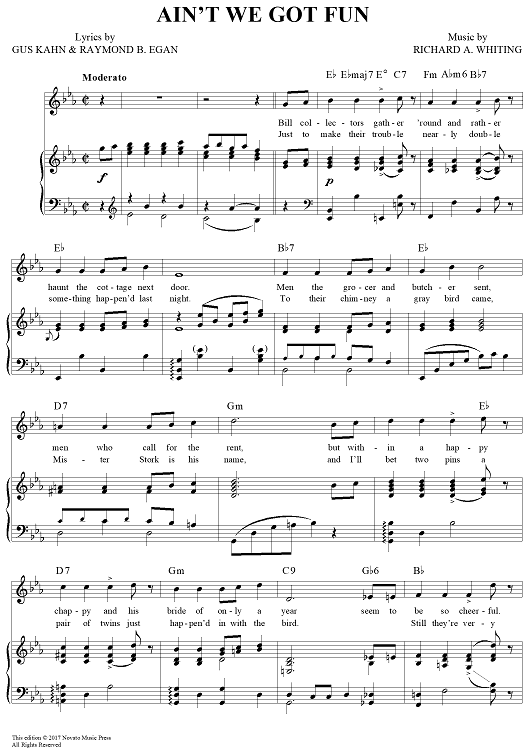 Digital Sheet Music for Ain't We Got Fun by Gus Kahn, Richard A. Whiting, Raymond B. Egan scored for Piano/Vocal; id:198137