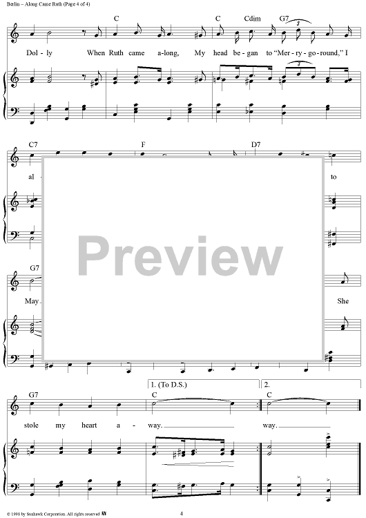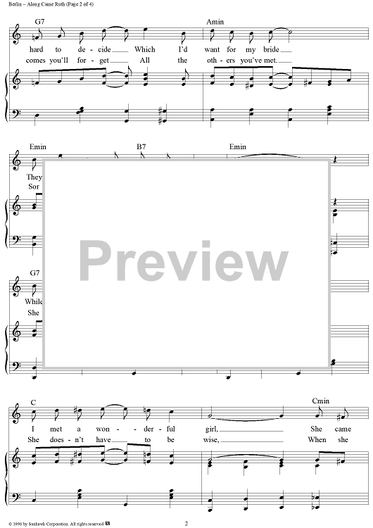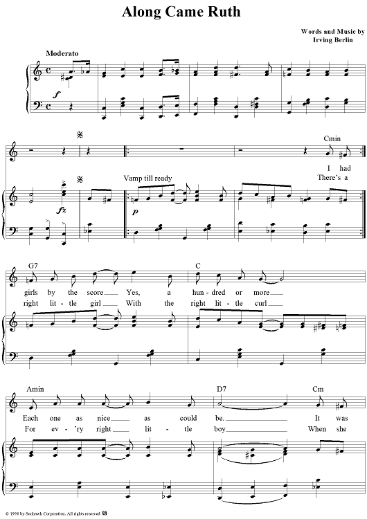 Digital Sheet Music for Along Came Ruth by Irving Berlin scored for Piano/Vocal; id:95778