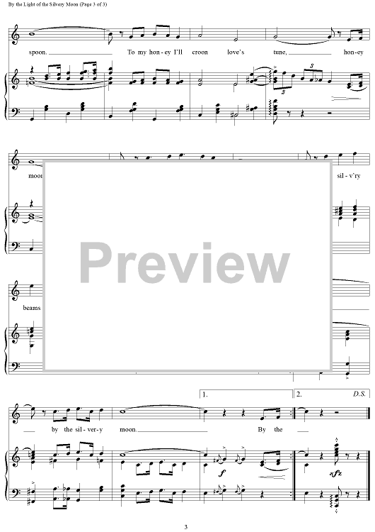 Digital Sheet Music for By The Light Of The Silvery Moon by Gus Edwards scored for Piano/Vocal; id:191562