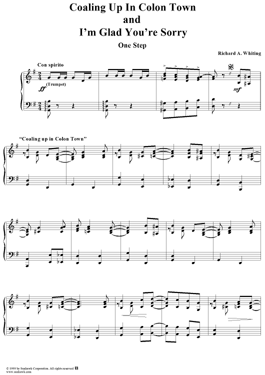 Digital Sheet Music for Coaling Up in Colon Town / I'm Glad You're Sorry by Richard A. Whiting scored for Piano Solo; id:118411