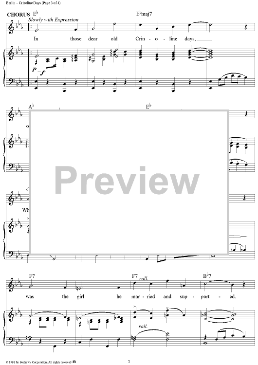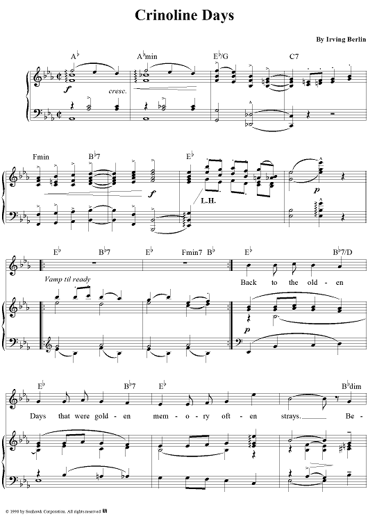 Digital Sheet Music for Crinoline Days by Irving Berlin scored for Piano/Vocal/Chords; id:95600