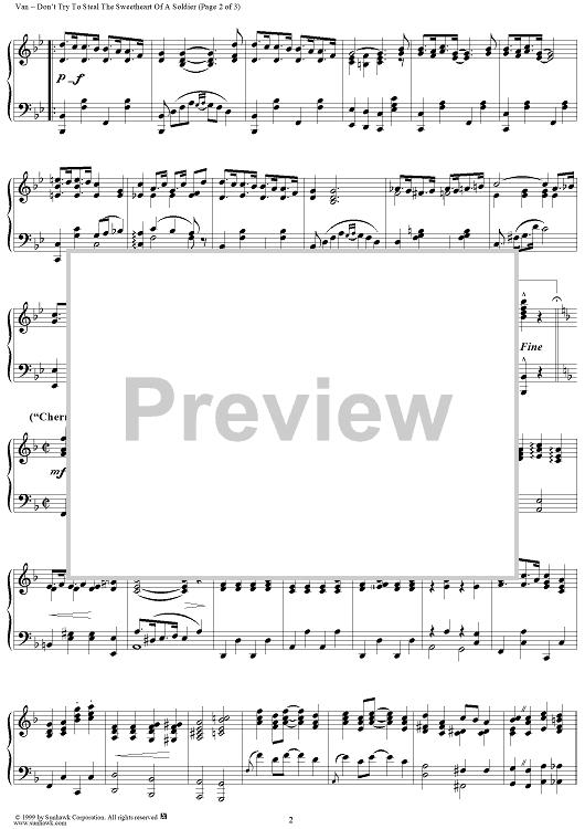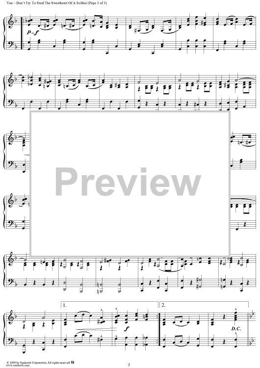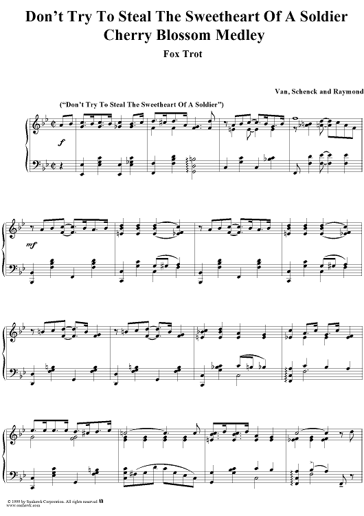 Digital Sheet Music for Don't Try to Steal the Sweetheart of a Soldier / Cherry Blossom Medley by Gus Van, Joe Schenck, Harry Raymond scored for Piano Solo; id:118425