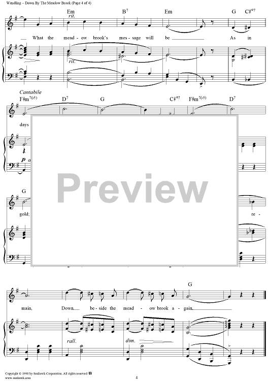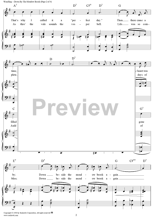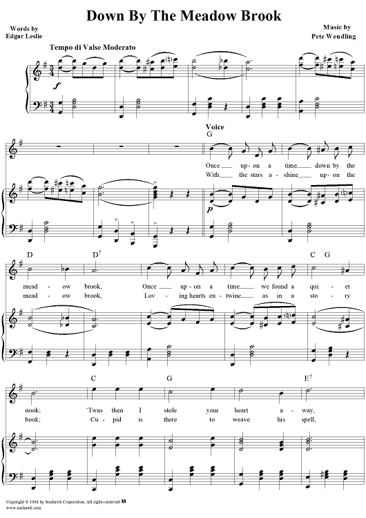 Digital Sheet Music for Down By The Meadow Brook by Pete Wendling, Edgar Leslie scored for Piano/Vocal/Chords; id:110320