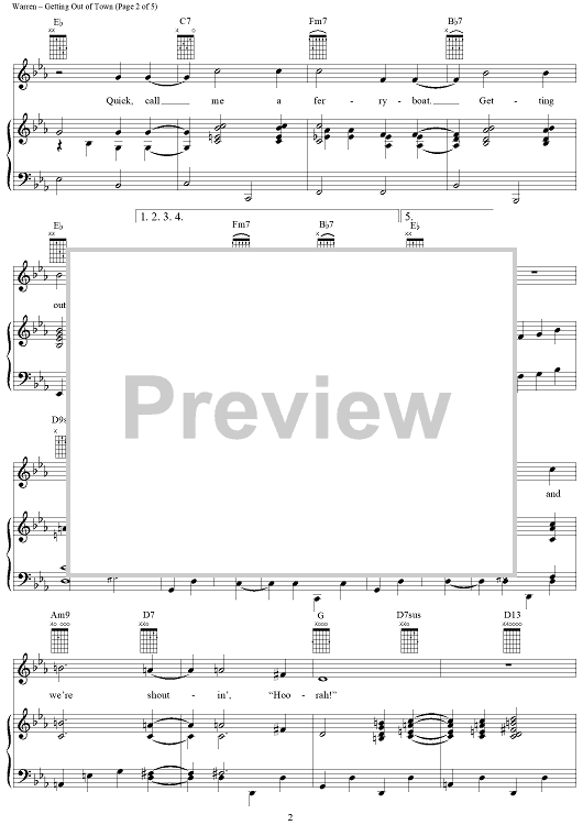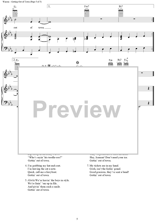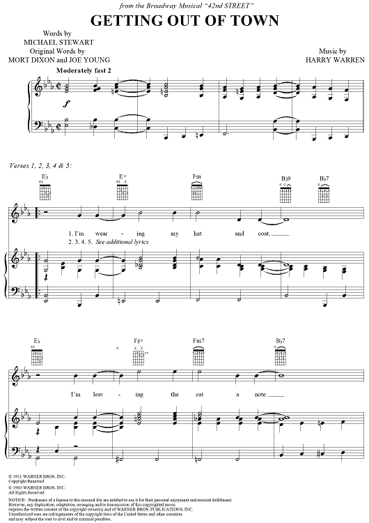 Digital Sheet Music for Getting Out of Town by Michael Stewart, Harry Warren scored for Piano/Vocal/Chords; id:131732