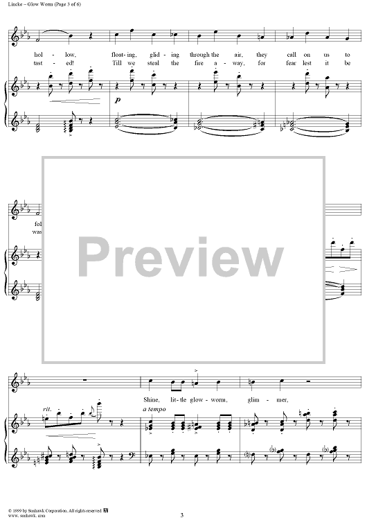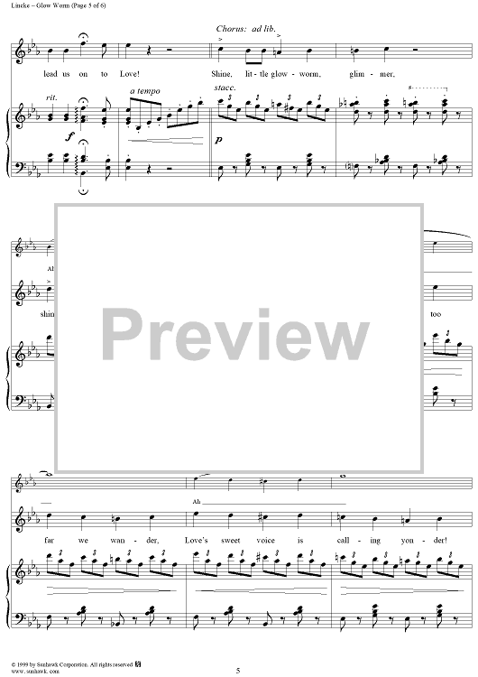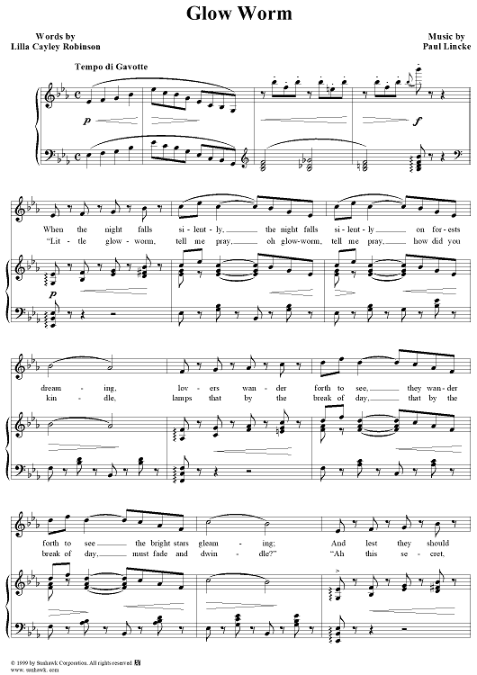 Digital Sheet Music for Glow Worm by Johnny Mercer, Paul Lincke, Lilla Cayley Robinson scored for Piano/Vocal; id:118271