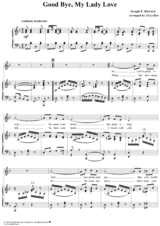 Digital Sheet Music for Good Bye, My Lady Love by Joseph E. Howard, Al La Rue scored for Piano/Vocal; id:118406