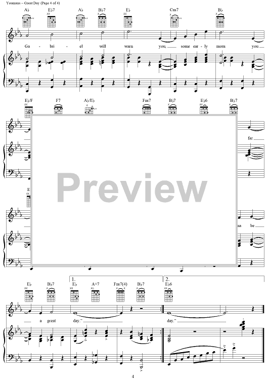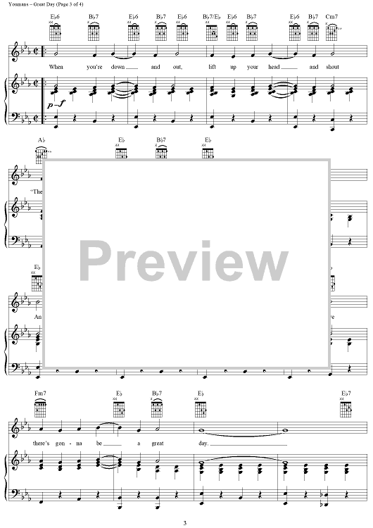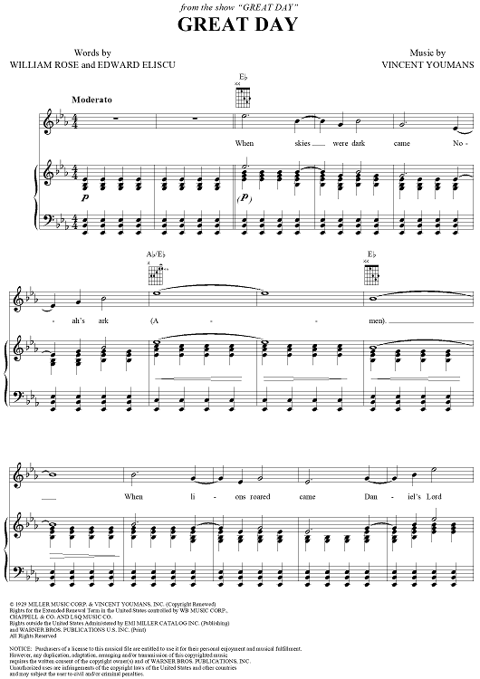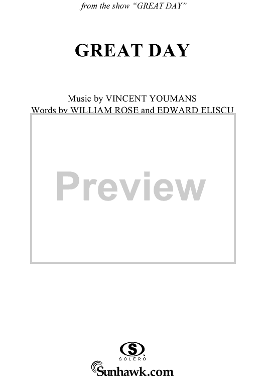 Digital Sheet Music for Great Day by Vincent Youmans, Edward Eliscu scored for Piano/Vocal/Chords; id:262967
