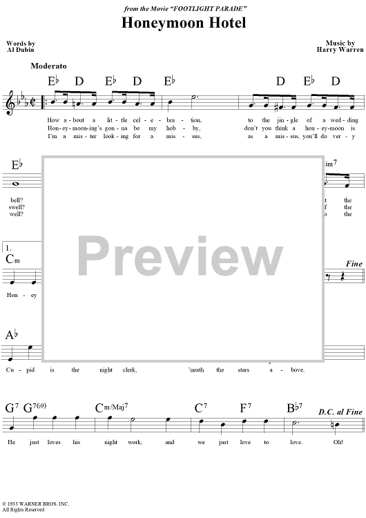 Digital Sheet Music for Honeymoon Hotel by Harry Warren, Al Dubin, Dick Powell scored for Lead Sheet; id:111984