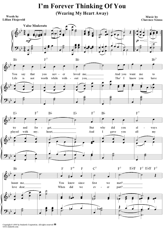 Digital Sheet Music for I'm Forever Thinking of You by Clarence Senna, Lillian Fitzgerald scored for Piano/Vocal/Chords; id:118312