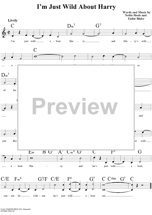 Digital Sheet Music for I'm Just Wild About Harry by Judy Garland, Al Jolson, Eubie Blake, Noble Sissle scored for Lead Sheet; id:110325