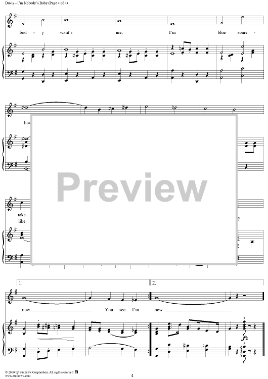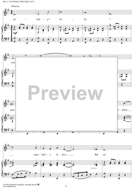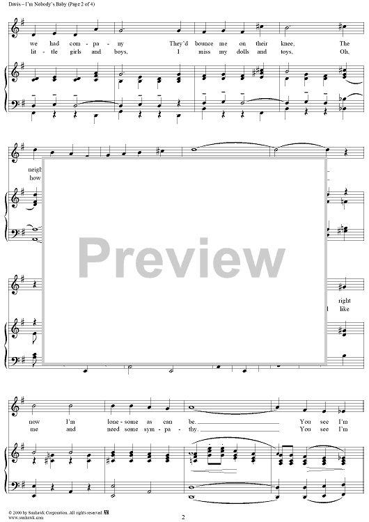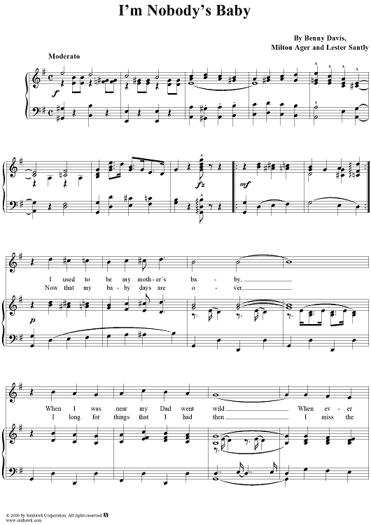 Digital Sheet Music for I'm Nobody's Baby by Milton Ager, Benny Davis, Lester Santly scored for Piano/Vocal; id:198135