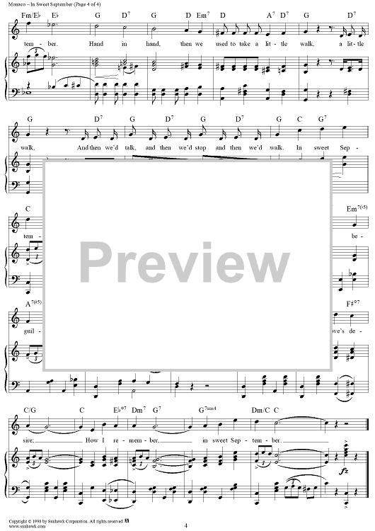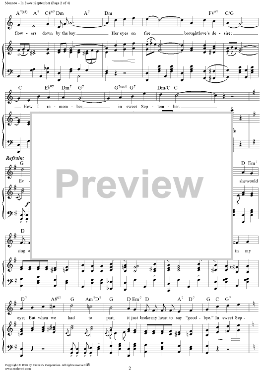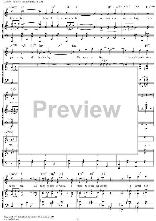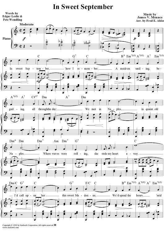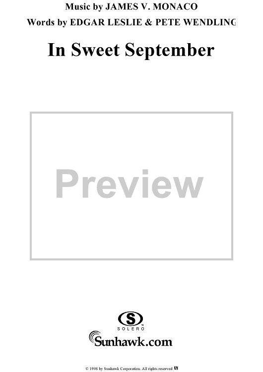 Digital Sheet Music for In Sweet September by Al Jolson, James V. Monaco, Pete Wendling, Edgar Leslie, Fred Ahlert, Paul Biese Trio scored for Piano/Vocal; id:118408
